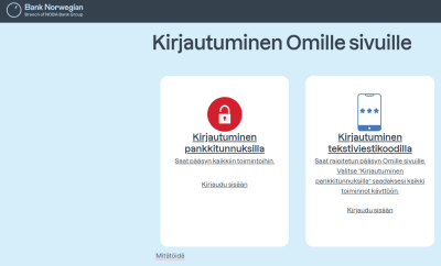 Tämä ohjaa sinut kotisivuillemme. Bank Norwegianin sivuilla voit vahvistaa luottokortin rekisteröinnin matkapuhelimella tai pankkitunnuksillasi, valitse ”Kirjaudu sisään”